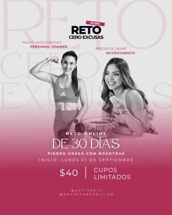 Nos unimos Mechita Jaime (Nutricionista) y Nicky Kuisjanovic (Personal Trainer) para crear este RETO de 30 días y te estaremos acompañando durante todo el proceso